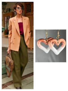 La sélection Mila Bijoux : Choisissez des boucles d’oreilles « évasées » (plus larges en bas qu’en haut). Des modèles en porcelaine de forme pyramidale ou en éventail rempliront parfaitement cet espace et attireront l’attention sur votre sourire.