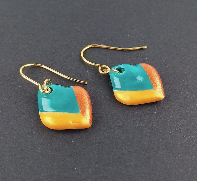 Boucles d’oreilles en porcelaine. Peinture métallisée