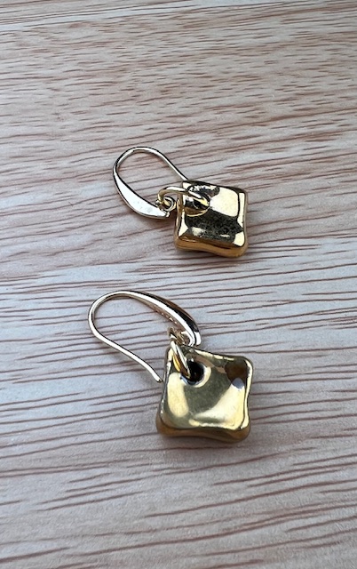 Boucles d’oreilles en porcelaine décorées en or.