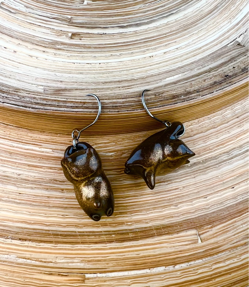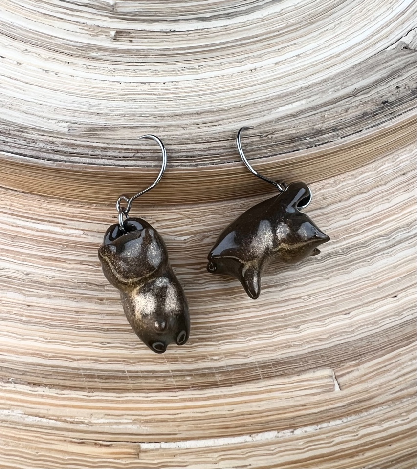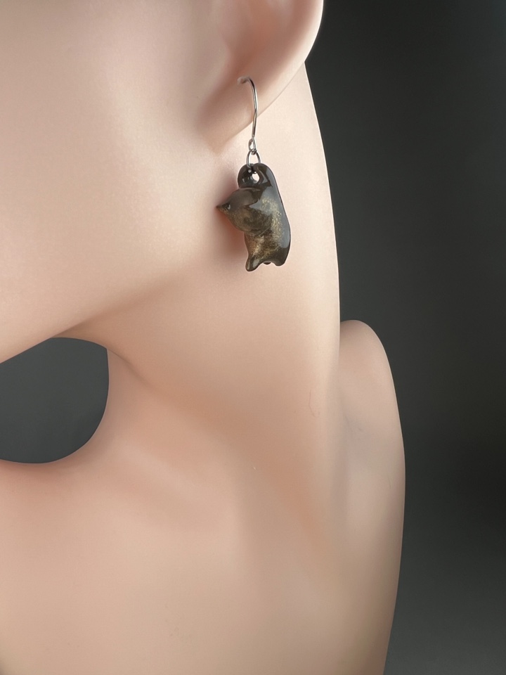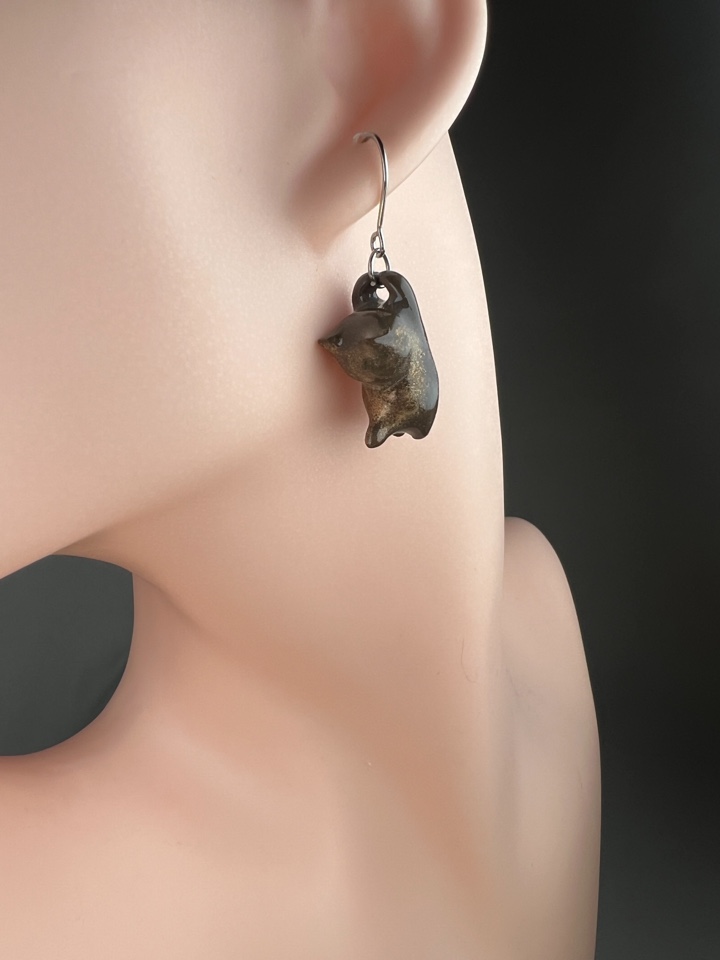 Ces boucles d’oreilles en porcelaine style chat sont sublimées par des touches de peinture métallisée. Un accessoire raffiné qui combine l’élégance de la céramique et la modernité d’une finition brillante. Idéales pour une note de fantaisie chic.
