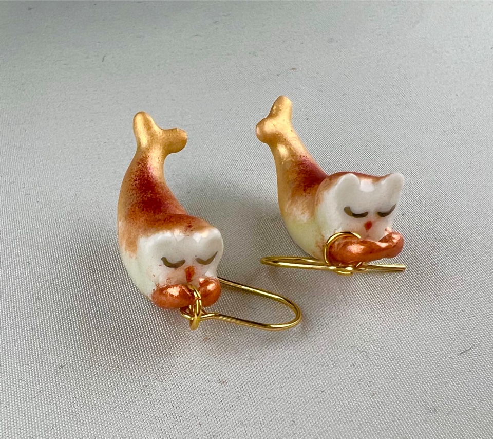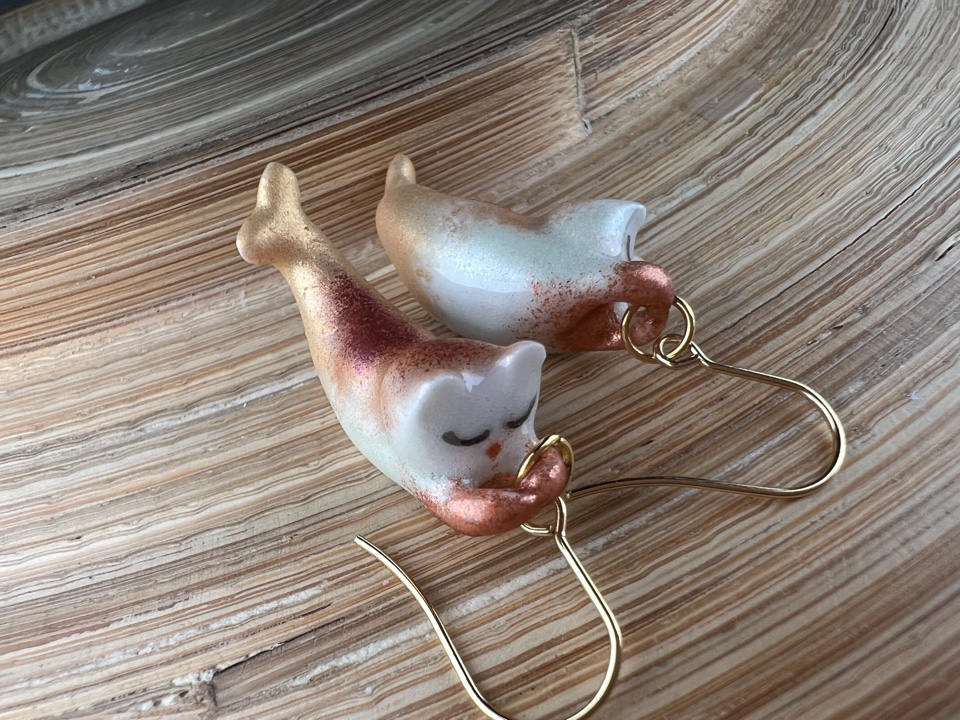 Ces délicates boucles d’oreilles en porcelaine, façonnées avec amour, capturent tout le charme espiègle du chat.
