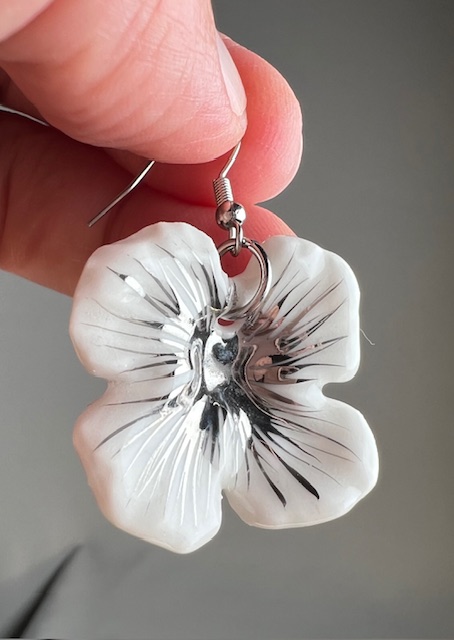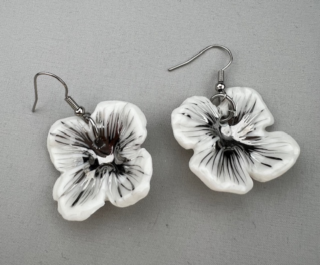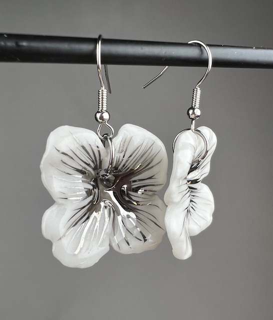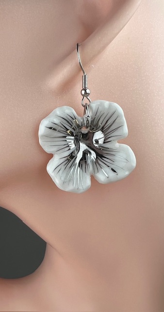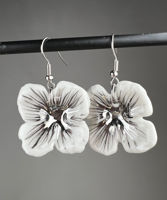 Boucles d’oreilles en porcelaine, décorées en liquide platine.
