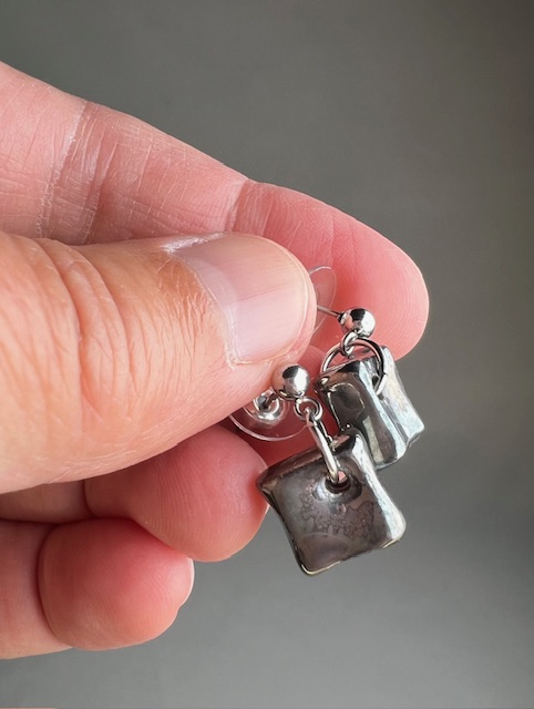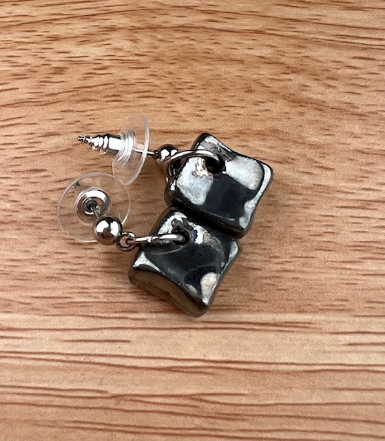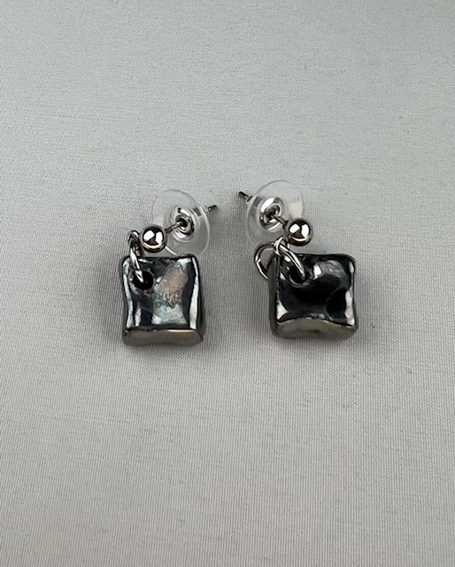 Boucles d’oreilles en porcelaine, décorées en liquide platine.