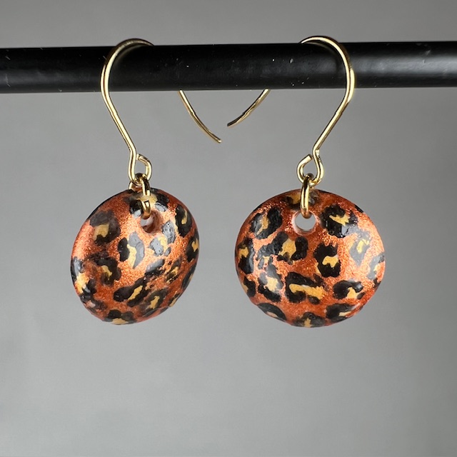 Boucles d’oreilles en porcelaine peinture métallisée.