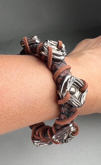 Le choix du cuir ethnique n’est pas anodin ; il est au cœur de l’identité de nos bracelets. Nous sélectionnons des cuirs souples, confortables et durables, souvent issus de techniques artisanales traditionnelles. Qu’il s’agisse de lanières tressées, de bandes patinées par le temps, ou de motifs embossés évoquant des cultures lointaines, le cuir apporte une dimension de force, de caractère et d’authenticité. Il se moule parfaitement à votre poignet et s’embellit avec le temps, développant une patine unique qui raconte votre histoire. Ce mariage du cuir et de la porcelaine évoque un esprit d’aventure, un lien avec l’artisanat du monde et une esthétique naturellement chic.