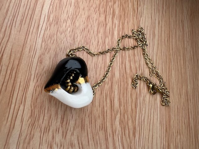 - Matériaux : Pendentif en porcelaine fine, Or liquide 12 %, Chaîne et fermoir en acier inoxydable de haute qualité.
