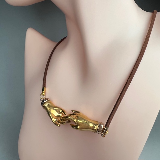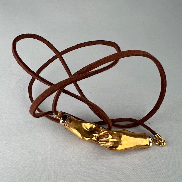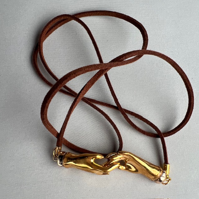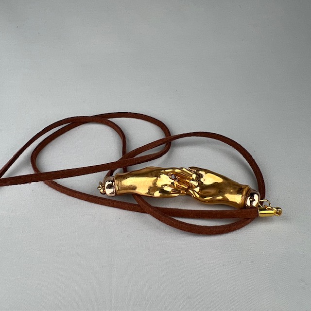 COLLIER PENDENTIF OR mains dorée sur cordon cuir véritable ANASTASSIA
