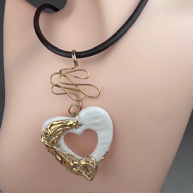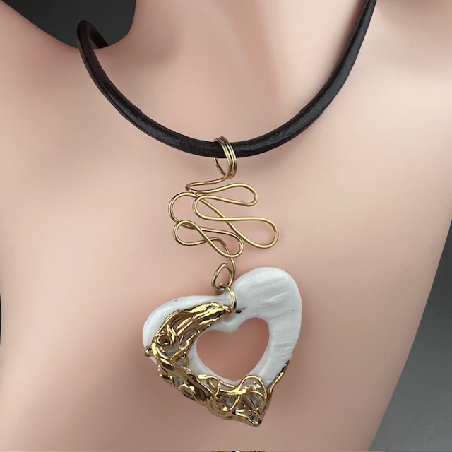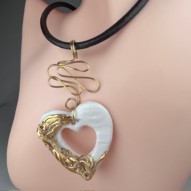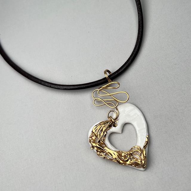 La Pureté Sculptée : Colliers en Porcelaine OR sur Cordon cuir véritable