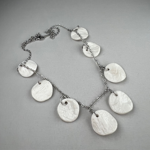 collier porcelaine blanche sur chaine HORTENSIA